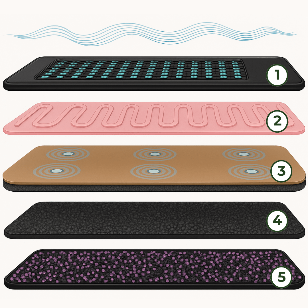 The Infrared PEMF Therapy Mat blends the Earth’s natural Schumann Resonance with soothing infrared heat and crystal-infused layers.