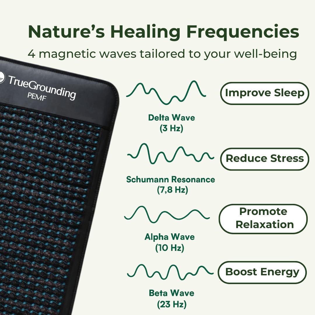 Mimics Earth’s healing frequencies to reduce inflammation, boost energy, relieve stress, and improve sleep.