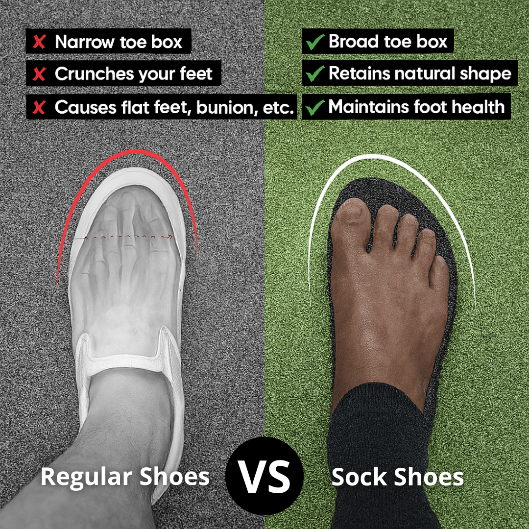 TrueGrounding™ sock shoes are designed with a wide toe box to allow natural foot movement. Whether you wear socks is entirely up to you!